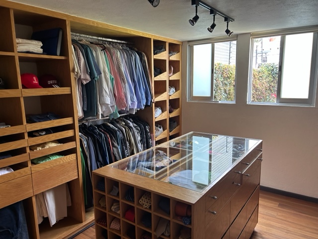 Recámara principal tipo master suite con sala privada, amplio vestidor y baño completo.