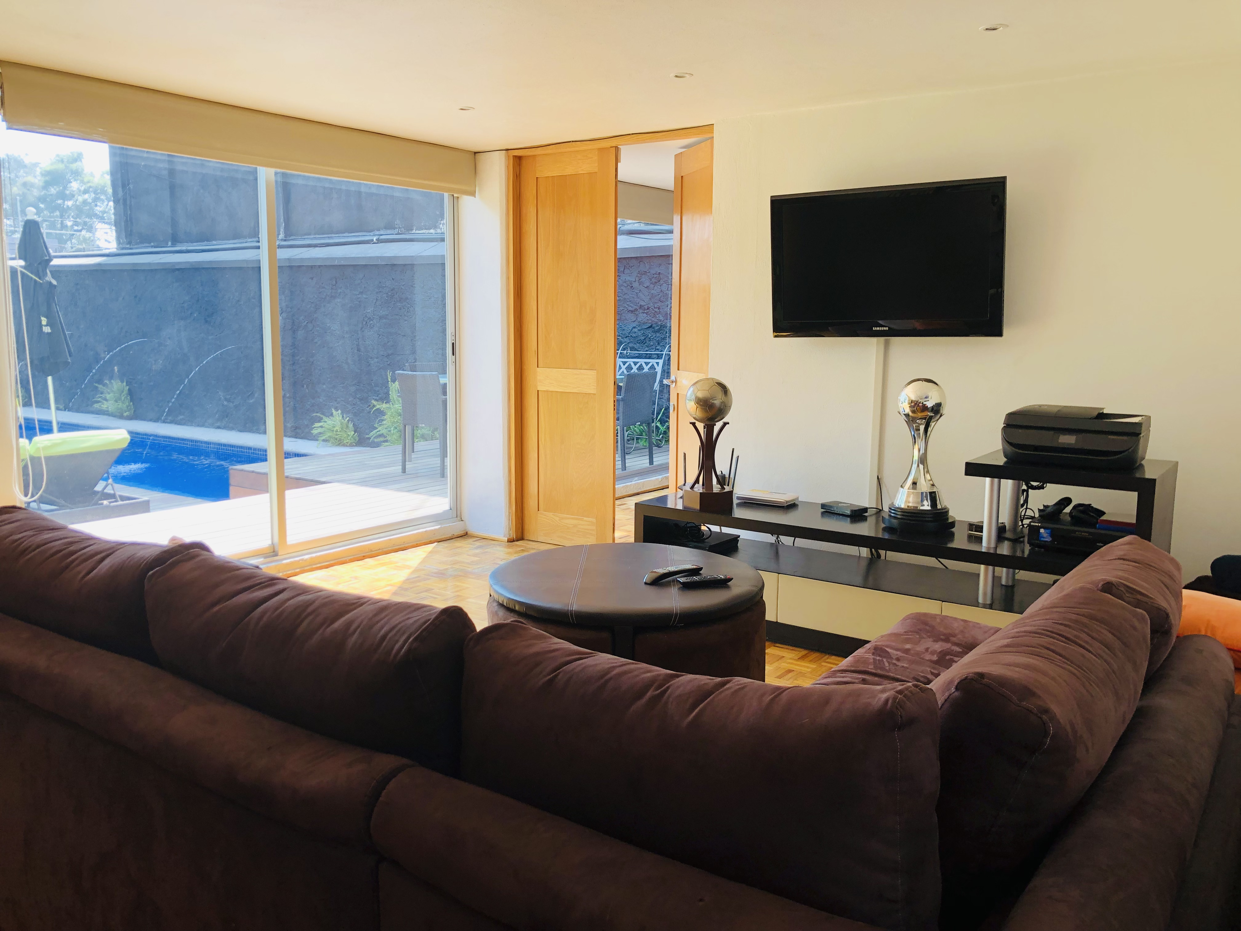 Dos recámaras secundarias muy iluminadas, cada una con baño propio y amplios closets, Sala de TV.