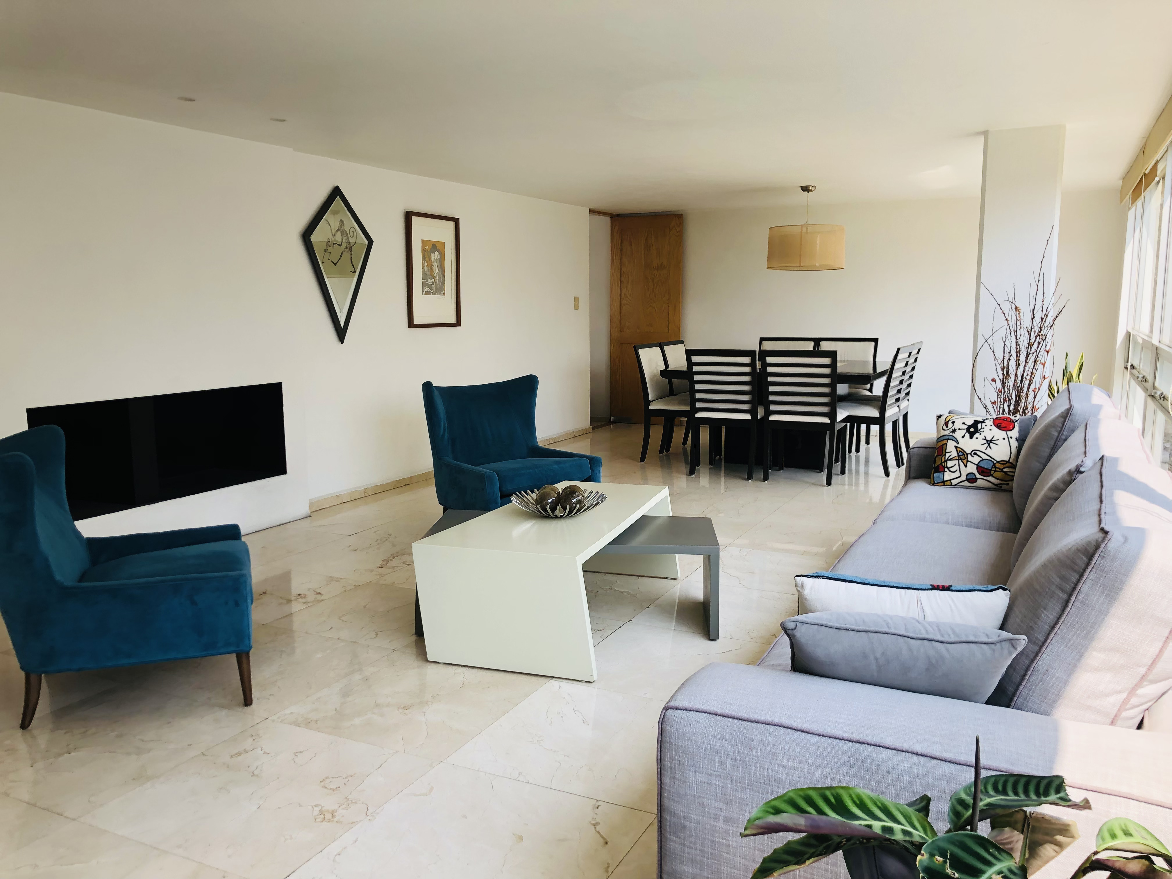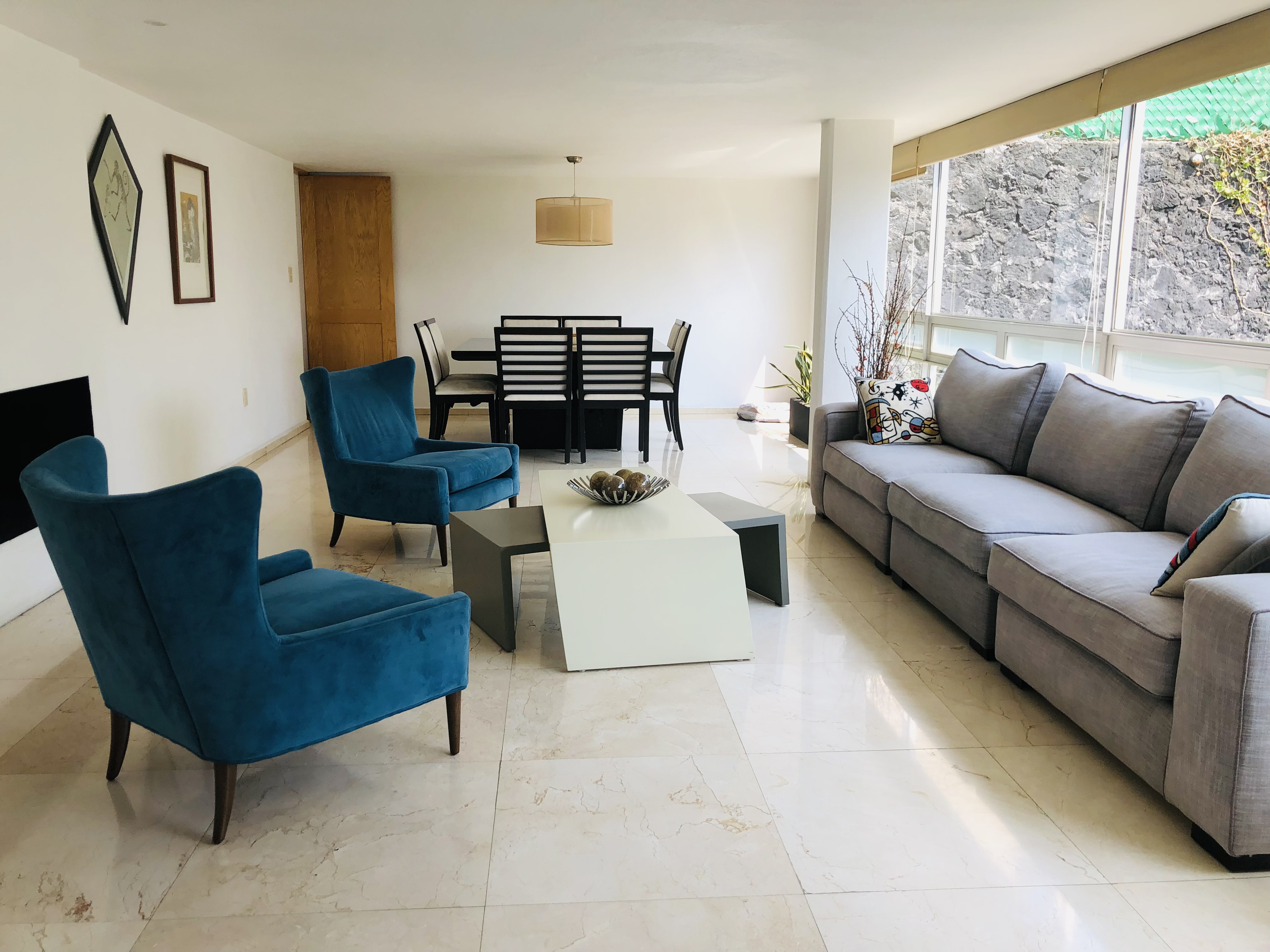Estancia para sala y comedor con vista panorámica al jardín
